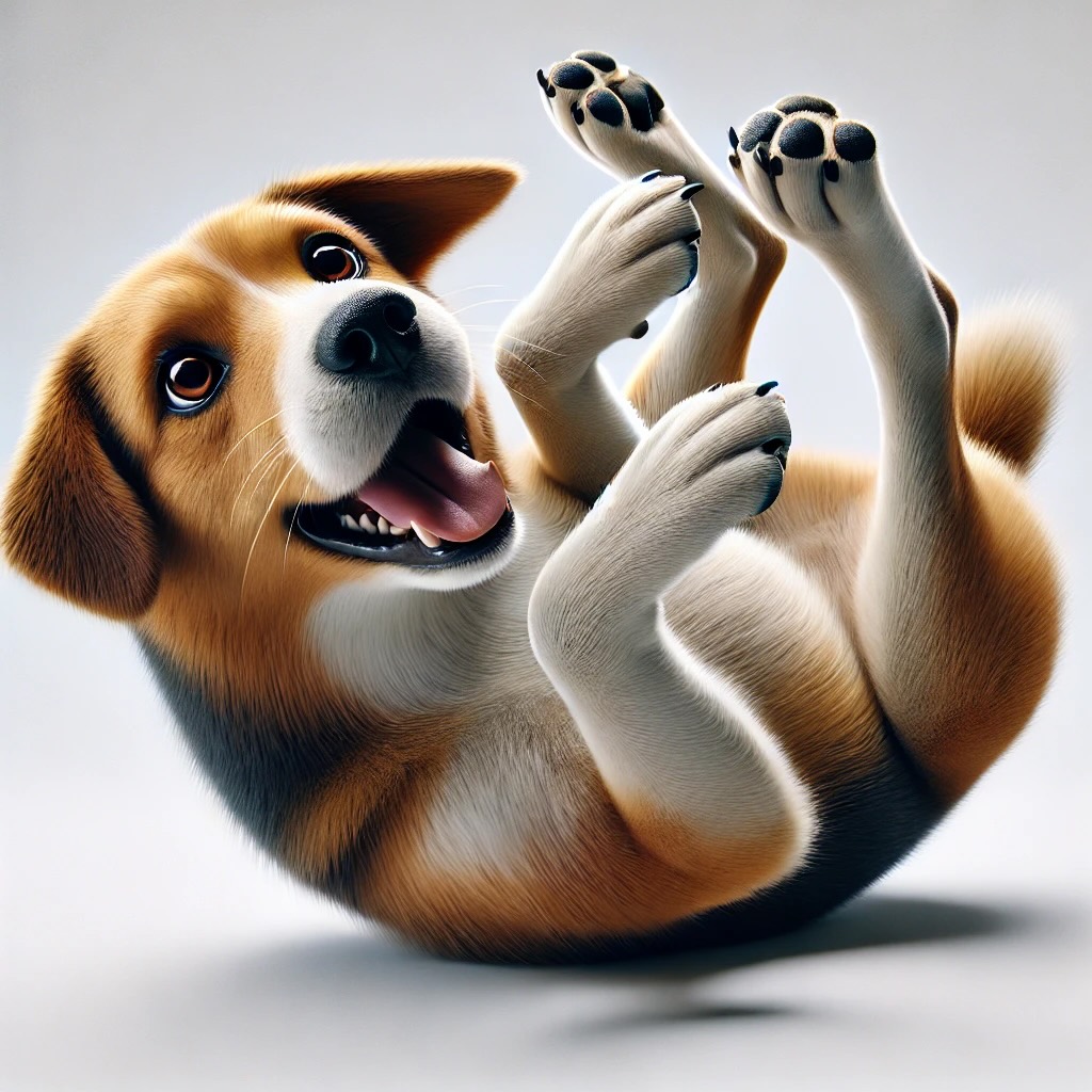 A dog rolls over to show it trusts you or wants a belly rub.