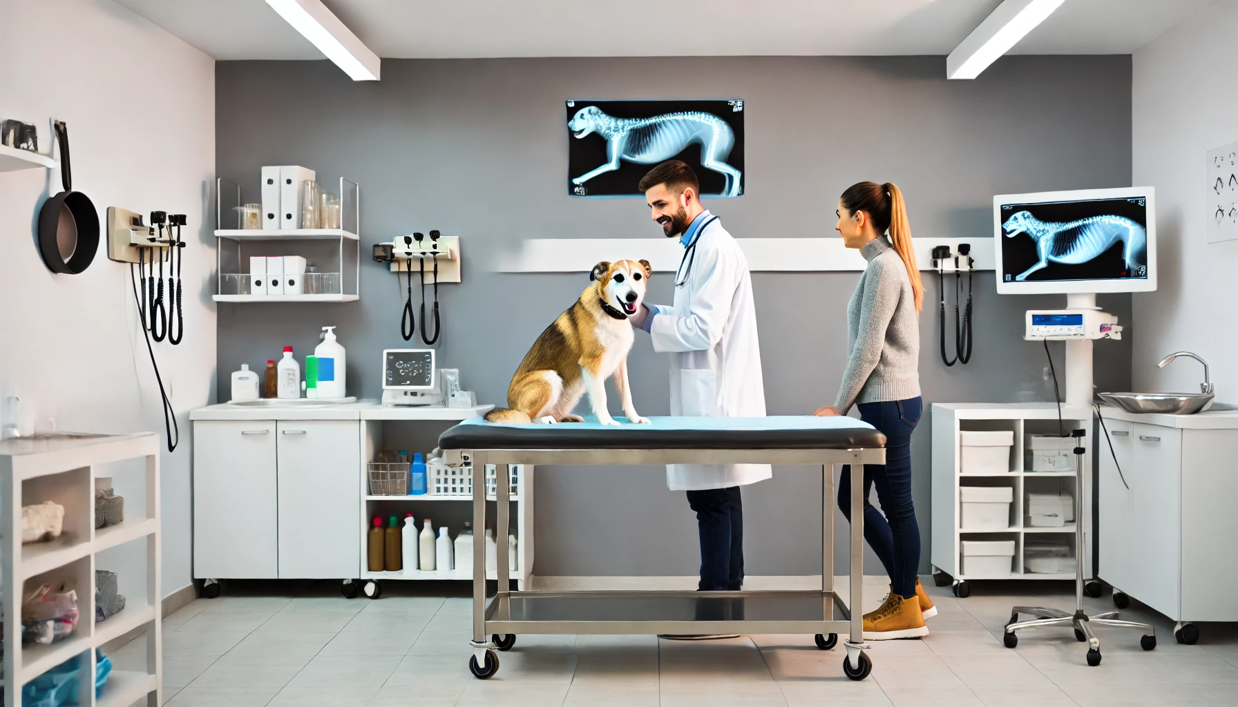 In the vet radiology room, the doctor uses an X-ray machine to take pictures of the inside of your pet. These pictures appear on a computer screen. By looking at them, the doctor can see if anything is wrong, like broken bones, and decide how to help your pet feel better.