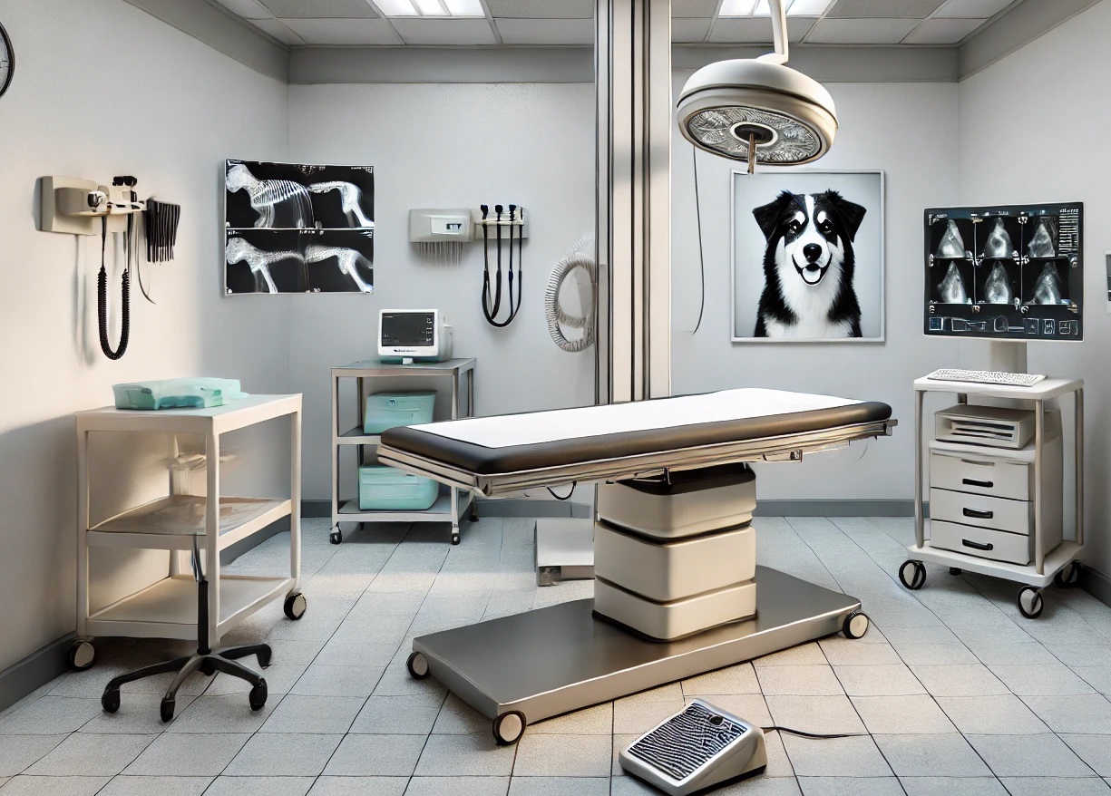 The X-ray table in the vet radiology room is where your pet lies down to get an X-ray. The table helps keep your pet still so the doctor can take clear pictures. Your pet might lie on its side, back, or tummy, depending on what the doctor needs to see. This helps the doctor check inside your pet’s body to find out what might be wrong.